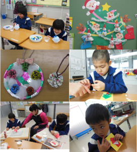 お楽しみ会では、ツリーの飾り付けや学級ごとの発表などの活動を予定しています。